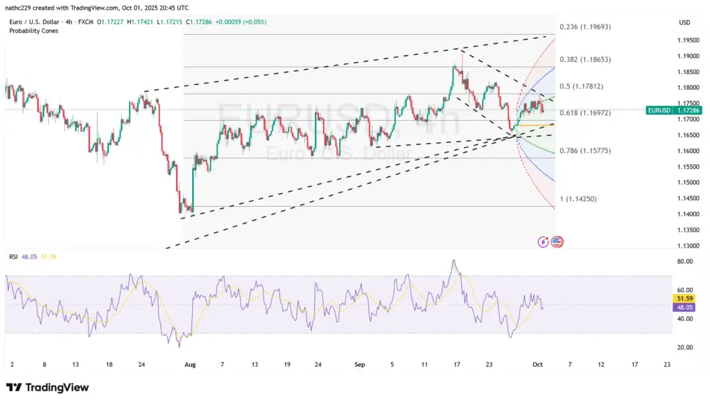 EUR/USD faces a tactical tug-of-war: longer-term fundamentals argue for higher levels if U.S. labor softening persists, but short-term technicals caution against aggressive bullish positioning. A sustained close above 1.1780 is needed to reassert control. Failure to defend 1.1715 risks a slide toward 1.1670 and potentially 1.1606.